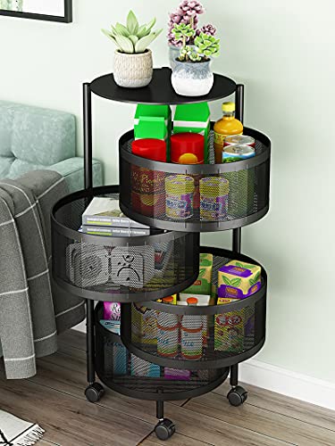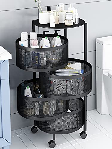 ZZJCY - رف مطبخ دوار متعدد الطبقات بسلال تخزين للوجبات الخفيفة والفواكه والخضروات، عربة معدنية برفوف مع عجلات وصناديق تخزين دائرية للمطابخ الصغيرة، ادوات تنظيم طويلة وواسعة من 4 طبقات