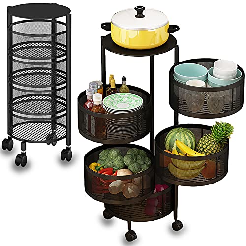 - [تصميم جديد دوار] عربة المطبخ من 2 إلى 5 طبقات مصممة مع سلة دوارة تجعل التخزين اليومي أسرع وأكثر راحة. وفي الوقت نفسه، تحتوي على 4 عجلات صغيرة متحركة مع فرامل، والتي يمكن أن تتحرك بمعدل 360 درجة بحرية، وهي مريحة للتنظيف