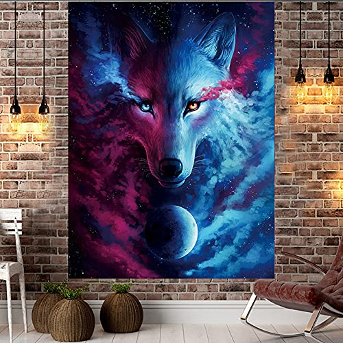 zzjj - زيزي جيجي بساط حائط بتصميم اسد على شكل حيوانات، قماش معلق باللون الاحمر، ديكور لغرفة النوم وجانب السرير، قماش صور، اصدار عمودي، متعدد الألوان