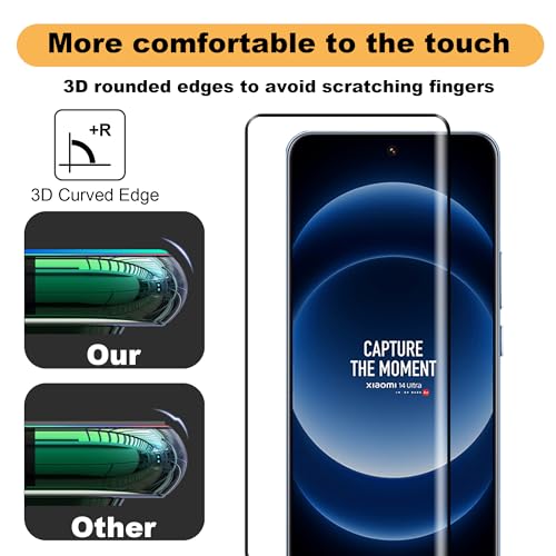 zZjoOoj - شاشة حماية ثلاثية الأبعاد من الزجاج المقوى لموبايل شاومي 14 الترا زد جوج عبوة 3 قطع عالية الدقة HD مع واقي بدرجة صلابة 9 شفاف