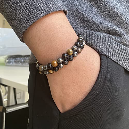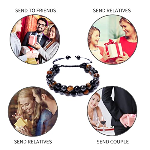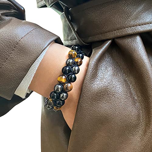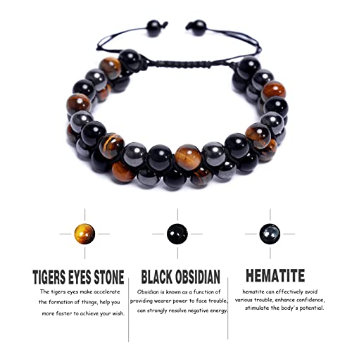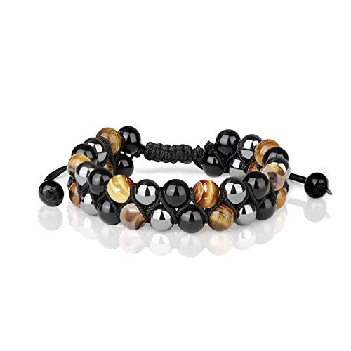 ZZRSWYD - سوار عين النمر ZZRSWYD للرجال ثلاثي الحماية أساور الأسود السج الثروة سوار هدية سوار الخرزة الكريستال الروحي