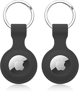 RADISOPH AirTags Case Silicone Sleeve for AirTags Durable Anti-Scratch Protective Skin Cover with Anti-Losing Keychain Ring Accessory Compatible with Apple AirTags (Black&Black)