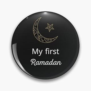 SM4U My First Ramadan Decorative Pin Button, Black with Gold Moon and Star Design, 5.8 cm