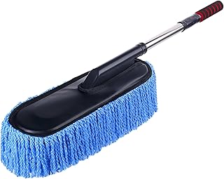 مساحة غسيل سيارات تلسكوبية مزودة بمقبض قابل للتمدد ورأس من المايكروفايبر للكشف عن الغبار وتنظيف السيارة بفعالية وسهولة