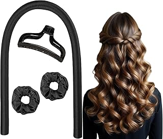 WINOK Overnight Curls, Heatless Curl Hair Ribbon, Silk Bands, Curls During Sleep, Headband Curlers - Black