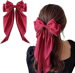Kefley Big Silky Satin Bow Hair Clips - Large French-Style Barrettes for Thick Hair, Red Bow-Knot Clips for Women & Girls, Christmas Hair Accessories