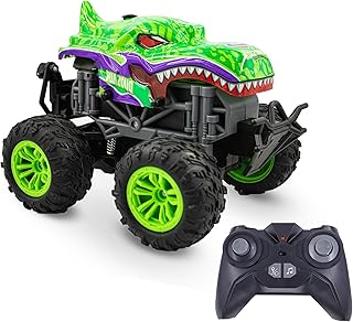 Family Smiles Kids RC Shark Monster Truck Toy Water Spray Haze Lights Sound Effects Remote Control Vehicle Teal 1:16 Scale Gift Toys for Boys (Green Dinosaur)