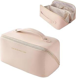 Travel Friendly Large Cosmetic Bag for Women:Waterproof Cosmetic Organizer Perfect for Keeping Cosmetics and Toiletries Organized (Beige)