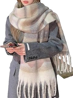 Women's Polyester Scarf, Multicolor Plaid, Retro Maillard Collection, Striped Pattern, Machine Washable, Autumn Winter Shawl with Tassels Multicolore