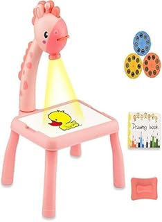 Giraffe's Draw Projector Toy - Drawing Projector Table For Kids Drawing Board Table Child Learning Desk With Smart For Boys Girls Age 3+ (Pink)