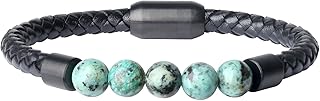 coai Mens Womens Leather Beaded Genuine Stone Bracelet (African Turquoise 21.5cm)
