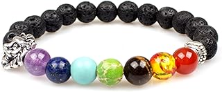 PWMEN Bracelet, Men Women 8mm Lava Rock Beads Chakra Bracelet Black Healing Energy Stone Gemstone Bracelet 7.08"