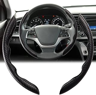 DIYARTS 2pcs Anti-Skid Breathable Plush Steering Wheel Covers, Fluffy Carbon Fiber Steering Wheel Covers