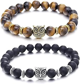 COLORFUL BLING Owl Bracelet Healing Crystal Bracelet Men's and Women's Spiritual Energy Beaded Bracelet Owl Gift Set Gift, no gemstone