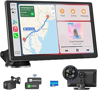 Avylet 9'' Wireless Apple Carplay Screen & Android Auto with 4K Dash Cam, Portable Car Stereo, 1080P Backup Camera, GPS Navigation, Car Audio Receivers Bluetooth, Mirror Link, Voice Control,AUX,FM
