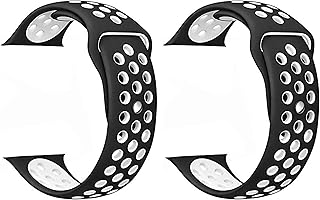 Generic Sport Silicone Watchband Breathable hole Replacement Strap for Apple watch strap 42-44mm bracelet Black and white, multi size, strap, Unisex