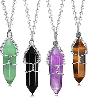 XIANNVXI 4Pcs Crystal Necklace Christmas Birthday Gifts for Men Women Healing Amethyst Obsidian Tiger Eye Green Aventurine Hexagonal Point Pendant Necklaces Wire Wrapped Jewelry, Stone,