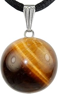 Steampunkers USA Celestial Collection - 14mm Moon Sphere Ball Tigers Eye, Golden Brown - 20-22 Inch Adjustable Black Cord – Crystal Gemstone Collectibles Carved Necklace Handmade Charm