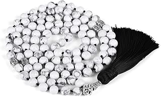 Cat Eye Jewels 8mm 108 Semi Precious Natural Gemstone Lava Stone Jasper Birthstone Healing Crystal Chakra Necklace Turquoise Beads Prayer Mala Beads Tassel Pendant Necklaces for Women Men, Turquoise,