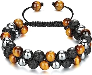 Triple Protection Handmade Bracelets, Lucky Crystal Healing Bracelets 10mm Tigers Eye Black Hematite Beads Obsidian Jewelry Bracelet for Men Women, Changing Destiny Brings Health Happiness Wealth