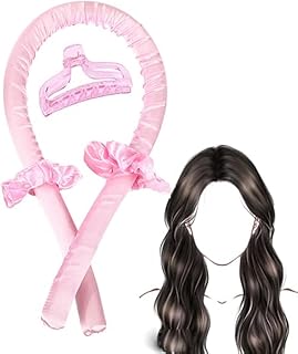Heatless Curling Rod Headband,Curling Rod Headband Lazy Natural Soft Wave DIY,Curl Ribbon with Hair Clips and 2 Scrunchie,Sleeping Curls Silk Ribbon Hair Rollers,Rubber material,Reusable (Light pink)