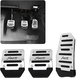 3PCS Metal Car Pedal Covers, Gas Pedal Aluminum Cover, Brake Pedal Cover, Clutch Pedal Cover, Manual Gearbox Pedal Cover Universal Fit (Silver)