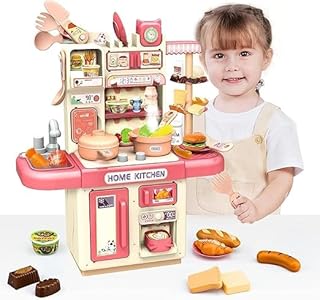 Generic A set of kitchen toys for pretend play and role-playing that includes a kitchen accessories game for toddlers with realistic steam and light and food pieces for girls and boys