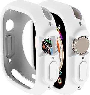 M.A.S 49mm Sport Hard Case with Screen Protector, Rugged Shockproof Protective Case with Tempered Glass & PC (White)