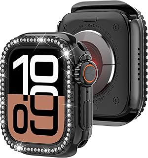 KUVPIUS Bling Diamond Case for Apple Watch Series 10 46mm, Black Watch Face Cover & Back Cover, Rugged Metal Protector for iWatch 46mm, Easy to Remove