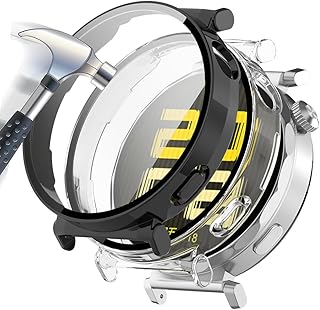 Acadey 2 Pieces Hard Case Compatible with Huawei Watch GT6 41 mm with Screen Protector, 9H Hardness Hart PC Slim Tempered Glass Case for Smart, Black+Transparent