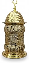 Decorative Turkish Incense Burner, Gold, Metal, Crescent Moon Finial, Islamic Design, Ornate Carved Pattern