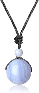 COAI Genuine Round Blue Lace Agate Necklace for Men Women, Blue Crystal Necklace