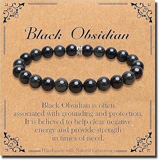 M.A.S Men and Women Natural Healing Gemstone Bracelet, 8mm, Obsidian- stainless_steel
