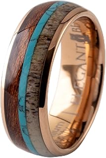 Gold Tungsten Carbide Ring inlaid with natural koa wood, natural deer ivory and turquoise stone A111