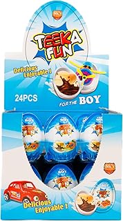 Teeka Fun Chocolate Surprise Eggs with Toy Inside, Delicious Chocolate Treats for Boys and Girls (24pcs, Boy)