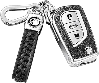 LORYVAN for Toyota Key Fob Cover Soft TPU 360 Degree Protection Key Case with Leather Keychain for Toyota, A-silver,