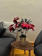 Artificial Christmas Arrangement with Red Poinsettias, White Berries, Pine Cones in Gold Decorative Vase, Holiday Winter Home Decor