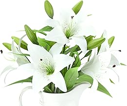 FiveSeasonStuff 5 Stems of Real Touch Lilies Artificial Flower Bouquet, for Home Shop Wedding Office Party Restaurant Décor/DIY Floral Arrangment Decoration 37cm (14.6'') (White)
