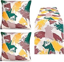 Cotinga Table Runner Bundle with 2 Decorative Throw Pillow Cases (13x72,16x16, Yellow Green Brown/Ivory)