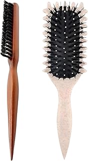 2-Piece Hair Brush Set – 1 Curly Defining Brush & 1 Wooden Baby Hair Brush – Professional Styling Kit for Smoothing, Detangling & Defining – Suitable for All Hair Types – Home & Salon Use