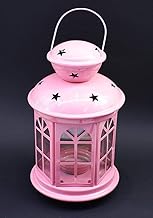 Next Store Ramadan Lantern Gold Hollow Dome Long Metal Decorative Lamp with Painted Glass Panels (Crescent & Mosque) & LED Light Luxury Islamic Traditional Decor
