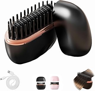 Portable Cordless Hair Straightener Brush, 2 in 1 Lightweight Mini Electric Thermal Comb, Fast Heating, Black with Pink Mini Cordless Hair Straightener Brush Comb Mini Cordless Hair Iron