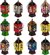 طقم سلسلة مفاتيح فانوس رمضان خشبي ، مقاس 6 سم اللالوان متعدده خمات عالية الجوده ، تصميم نجمه وهلال ، هدية مزخرف للعطلة ، حلقة مفاتيح معدنية INCLUDED بلون دهبى عرض من 12 قطع