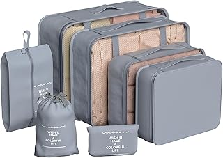 FAikhom 7 Set Packing Cubes for Travel -Luggage Organizers Compression Travel Packing Organizers Bag for Carry on Suitcases (Gray)