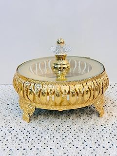 صندوق حلويات معدني ذهبي فاخر، مع غطاء زجاجي وتصميم شبكي، حامل للحلويات والشوكولاتة