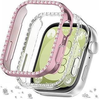 DEALELE [2-Pack Bling Case Compatible with Huawei Watch FIT 3, Sparkling Rhinestone Diamond PC Protective Case Bumper Replacement Watch Face Frame Cover for Women Men (Pink+Transparent)