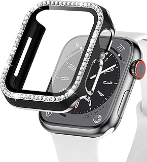 EIHAIHIS Bling Rhinestone Case Compatible with Apple Watch Case 45mm, Hard PC Diamond Protective Case with Tempered Glass Screen Protector for iWatch Series 8 7, Black and Silver