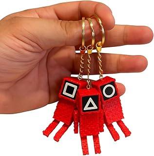 مجموعة سلسلة مفاتيح ألعاب بكسل جاردز من سكواد كود، شخصيات حمراء قابلة للتجميع مع رموز هندسية، عبوة من 3 قطع