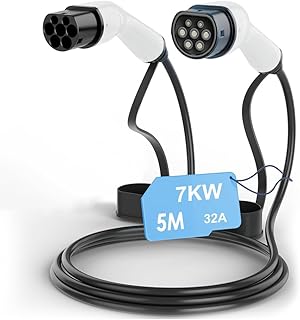 JUMEIYP EV Charging Cable Type 2 to Type 2, Portable EV Charger for Electric Vehicle, 32 Amp, Single Phase, 7kw, 5m Cable, IEC 62196-2(32A 7kw)