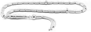 JAZZEEL 925 Sterling Silver Rosary with Engraved Beads Three Tassel Capsule Cut Design for Men Islamic Tasbih Misbaha Prayer Beads Spiritual Gift for Ramadan Eid Special Occasions - 35 Grams